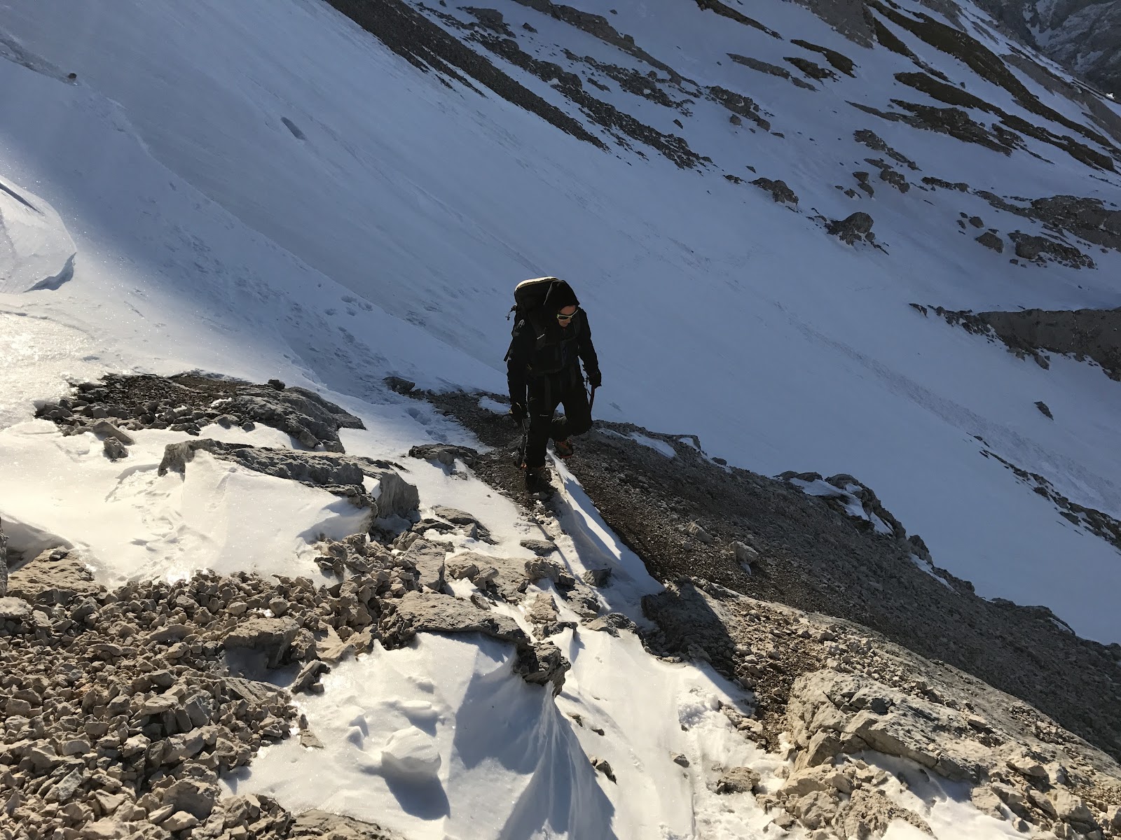 sva še pred bivakom nadela dereze, dodobra zmrznjeno. Pri bivaku krajši